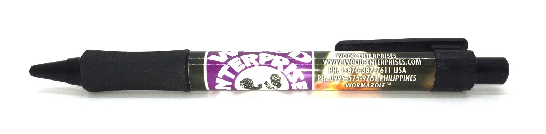 Wood Enterprises ball point pen. Free gift given for most orders between $100 and $200 of merchandise. Black ink.