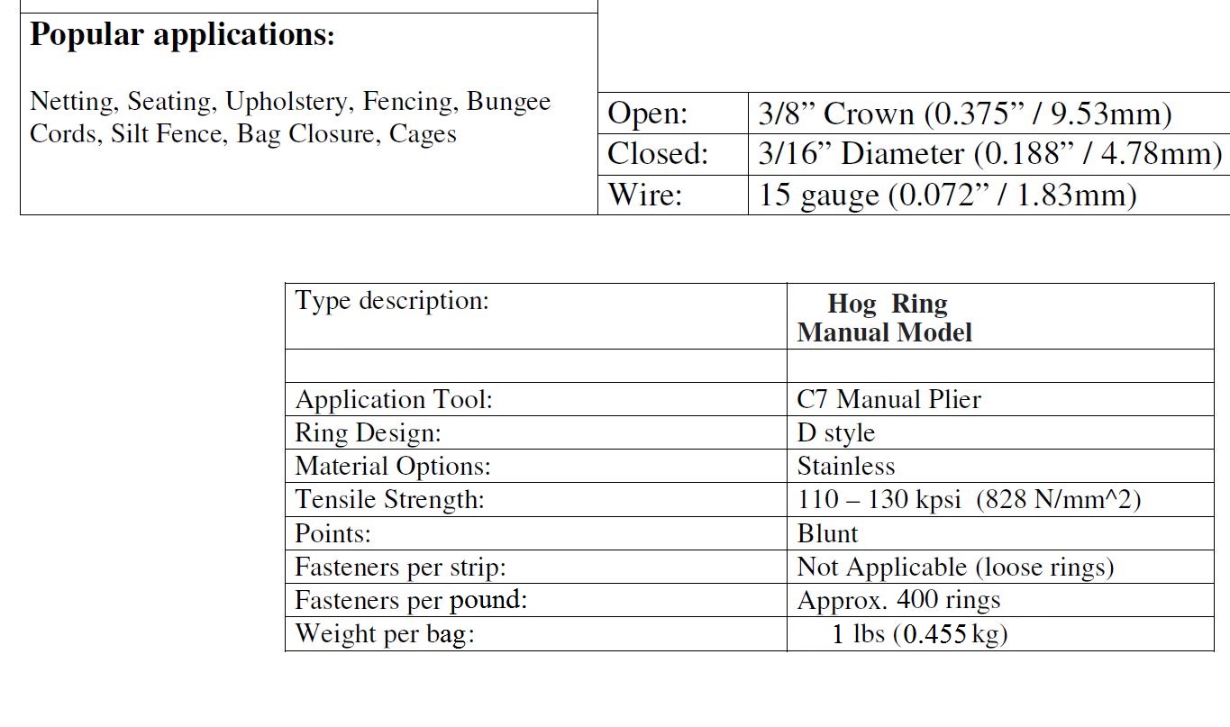 Cage rings 1 pound Stainless Steel (mini hog ring style cage ring) We now have two sizes, the 3/8" and a new larger size, 1/2" wide. Same price per pound, please select size above or you will automatically receive 3/8".