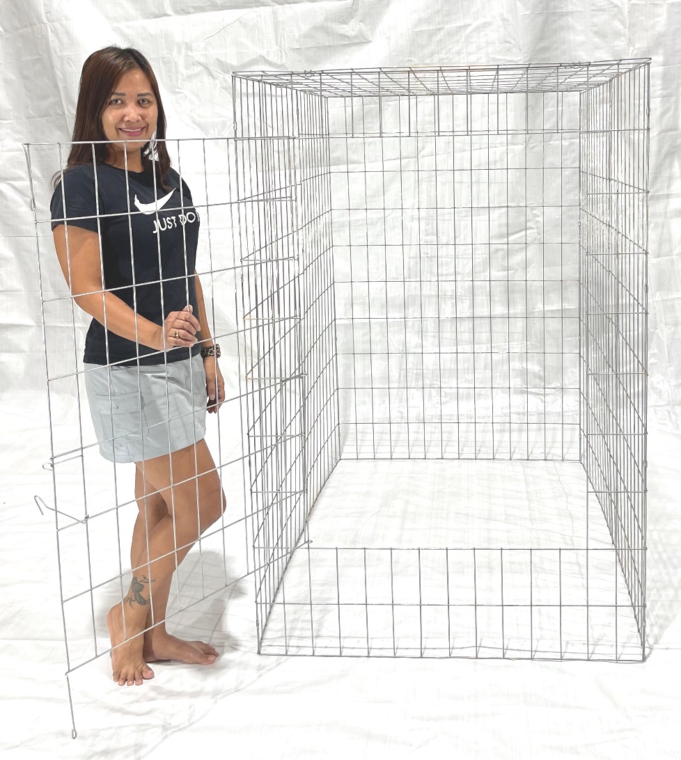 Heavy Duty, galvanized wire large fly pen. All wire 10 gauge, holes are approximately 2.75" wide x 5.5" high. Overall dimensions approximately 1 x 1.5 x 1.5 meters tall (39.36" x 59" x 59"). Each pen weighs ~ 33 lbs., shipping weight will be slightly higher. Ship by truck on pallets only. Customer pick up at our location is also welcome.