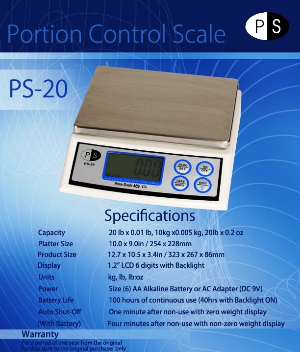 Electronic Scale #PS-20, from Penn Scale Manufacturing, the same company that makes the balance type "Cockers Scales"